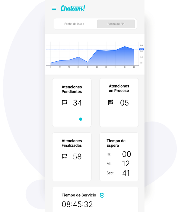 Registre a todo su equipo en el cuadro de mandos, dividido por departamentos. De esta forma, cada asistente recibe el servicio de forma forma organizada y usted puede supervisarlos a todos en tiempo tiempo real.